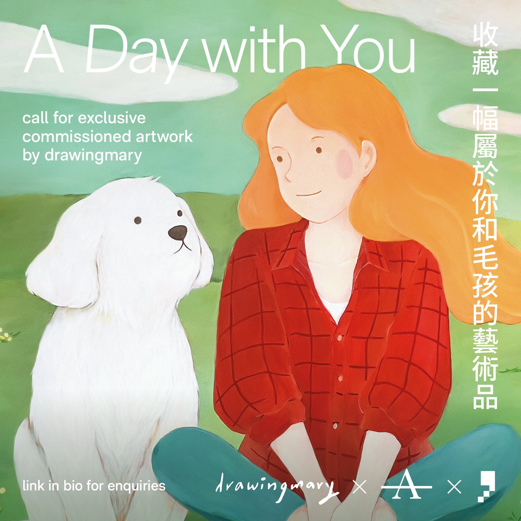 A prominent presence in her artwork is “Day”, a fluffy white dog and loyal companion to Mary. Day entered Mary’s life unexpectedly, providing companionship during the early stages of her artistic journey when she often found joy in solitude. Each piece by drawingmary serves as a testament to their pure friendship, a bond that promises many more years of shared joy.