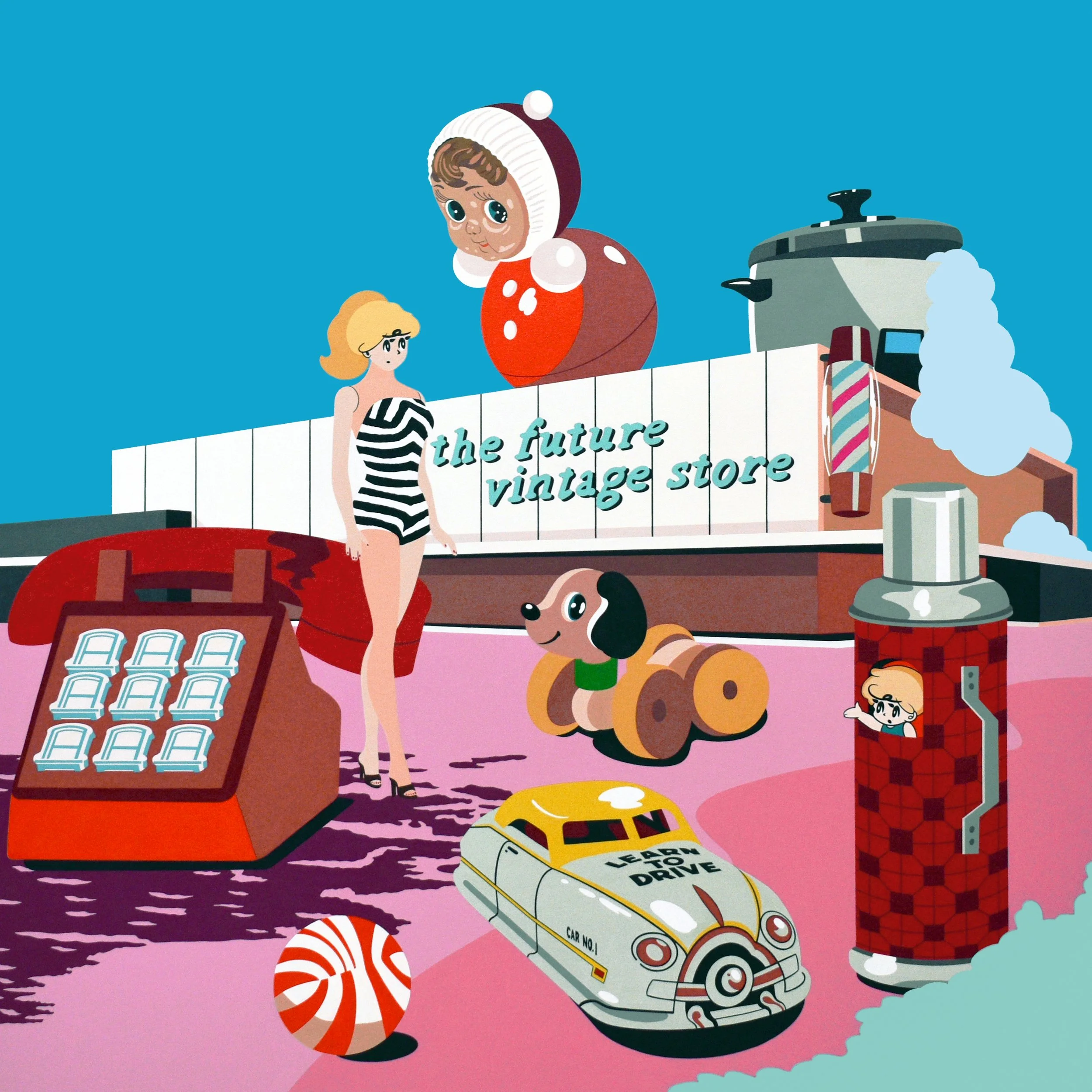 The phrase "the future vintage store," in my opinion, refers to my personality, which involves a love of both trendy and nostalgic items. I would like to compile all of my ideas into an exhibition.