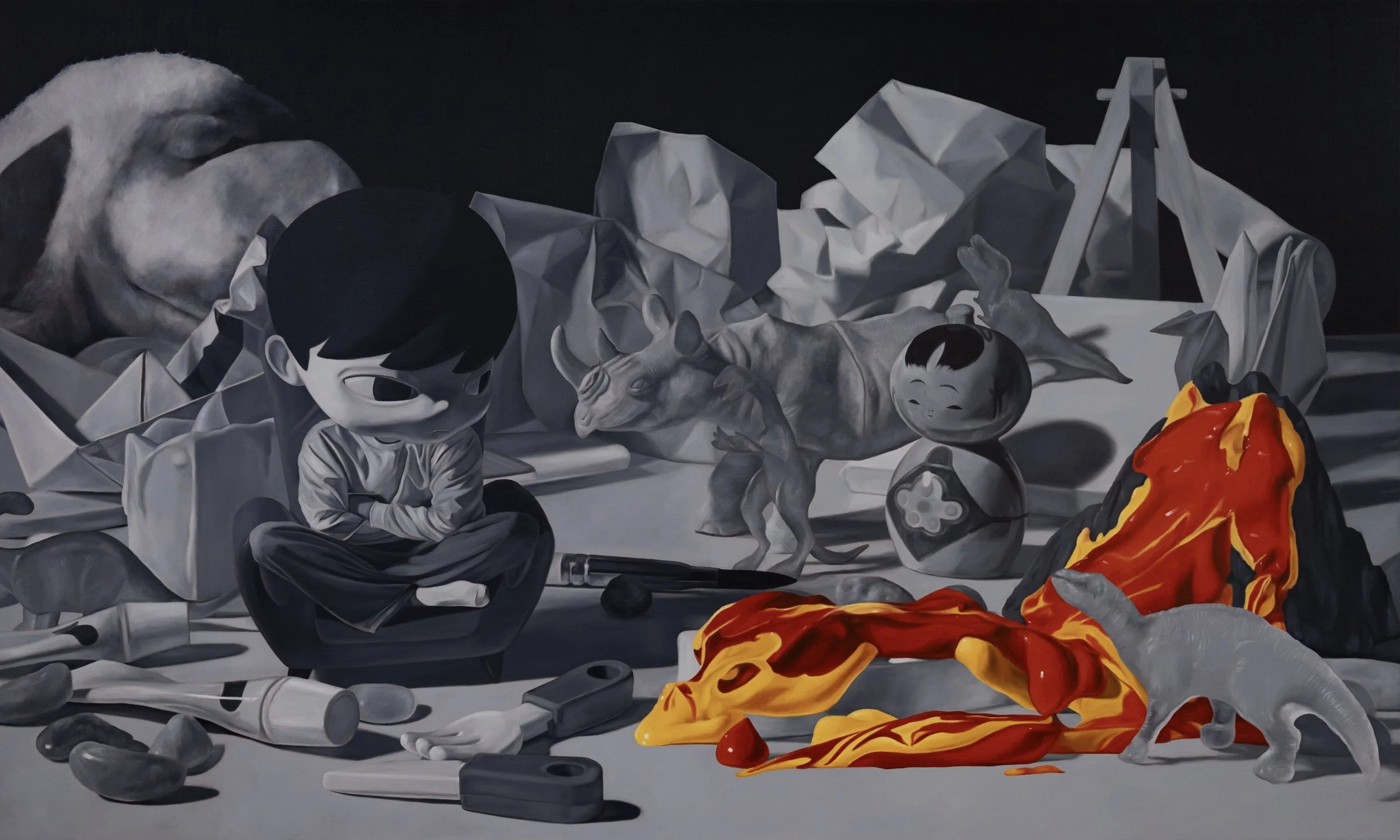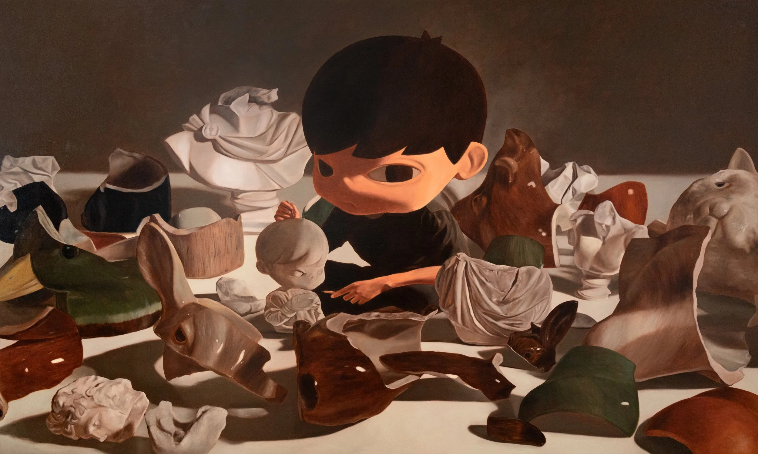 I translate feelings into objects and scenarios. Collapsing toy to suggest fragility, everyday items to ground ordinary life. I want viewers to feel the emotion without explanation.
